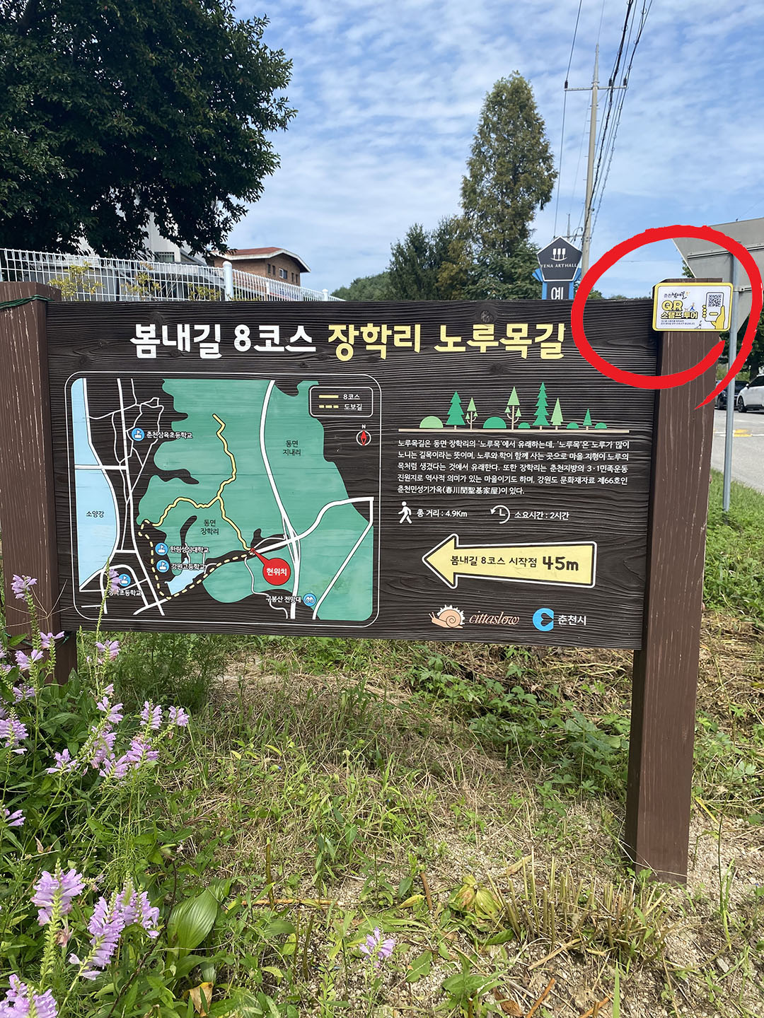 - 봄내길 6코스 시작지점 (노루목길입구) / 회귀지점 / 노루목길정상 / 봄내길 6코스 종료 지점