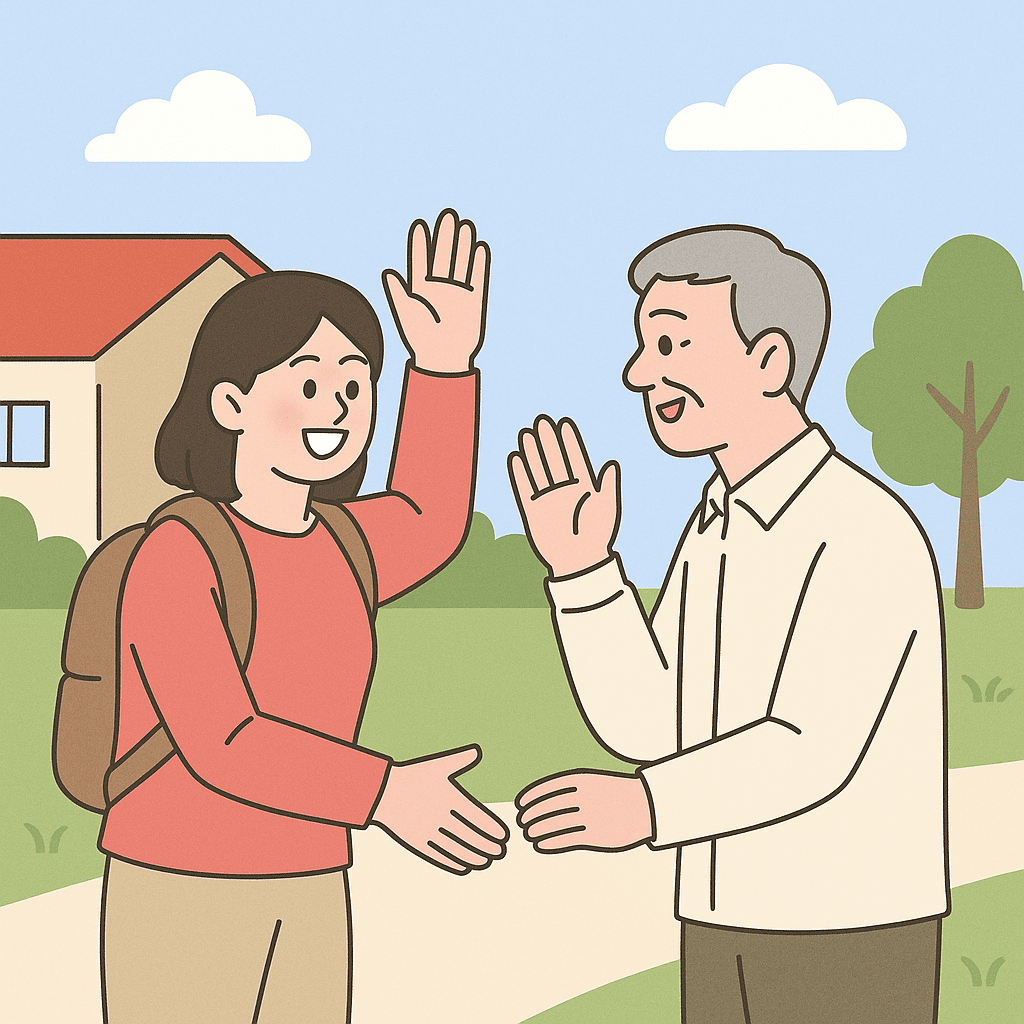 도보여행 시, 만나는 사람들과 밝고 상큼하게 해 봅시다.