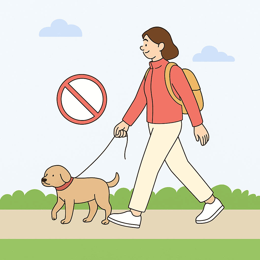 봄내길 산책을 하면서 반려동물을 데려오시면 도보여행자도 반려동물도 매우 힘들 수 있습니다. 또한 지역 주민이나 이용자들에게 불편을 끼칠 수 있으니, 자제해주시기 바랍니다.