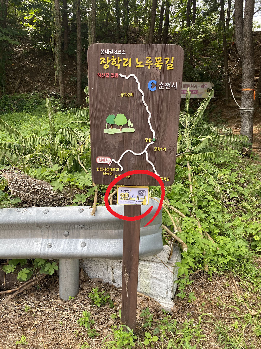 - 봄내길 6코스 시작지점 (노루목길입구) / 회귀지점 / 노루목길정상 / 봄내길 6코스 종료 지점