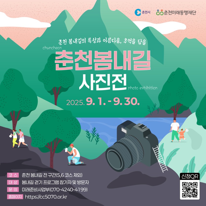 공지사항 춘천봄내길 사진전 페이지 정보 작성자 관리자 댓글 0건 조회 49회 작성일 25-08-18 13:03 목록 본문 코스 춘천 봄내길 전 구간 (5,6코스 제외) 대상 봄내길 걷기 프로그램 참가자 및 방문자 문의 미래준비사업부 070-4240-4199 이전글춘천봄내길 시니어힐링동행 걷기 프로그램 25.08.20 댓글 0 댓글목록 등록된 댓글이 없습니다.
