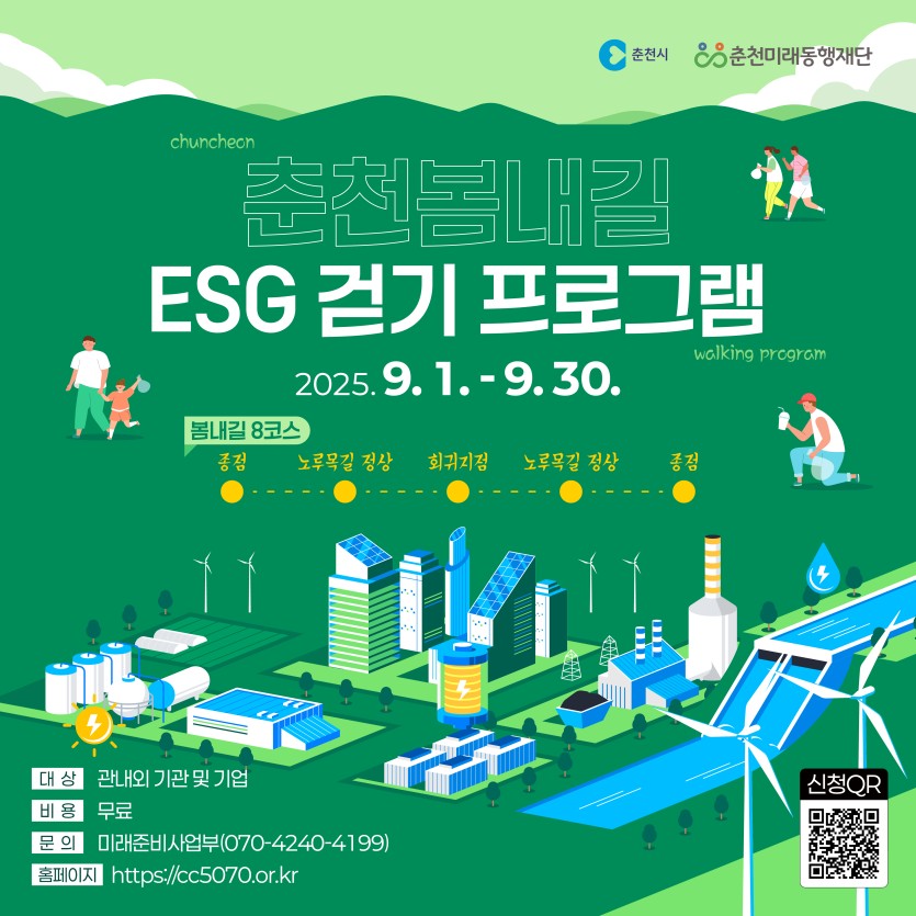 공지사항 춘천봄내길 ESG걷기 프로그램 페이지 정보 작성자 관리자 댓글 0건 조회 88회 작성일 25-08-20 21:16 목록 본문 2025.09.01 ~ 09.30 봄내길 8코스 대상 : 관내외 기관 및 기업 비용 : 무료 문의 : 미래준비사업부 (070-4240-4199) 이전글춘천봄내길 문화역사 해설 프로그램 25.08.20 다음글춘천봄내길 야간길 걷기 프로그램 25.08.20 댓글 0 댓글목록 등록된 댓글이 없습니다.