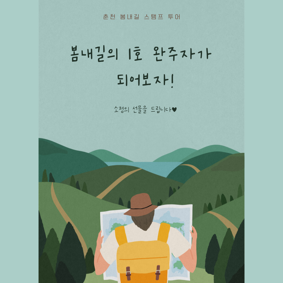 이벤트 봄내길 1호 완주자가 되어보세요! 페이지 정보 작성자 관리자 댓글 0건 조회 136회 작성일 25-08-22 21:02 목록 본문 봄내길 1호 완주자가 되어보세요! 전구간 코스 완료 스탬프 인증을 하신뒤 마이페이지에서 인증서 발급신청하기 를 클릭하시면 1호분께 소정의 선물을 드립니다! 이전글봄내길 디지털서비스 지원단 제작 소개 영상 25.09.05 다음글춘천봄내길 문화역사 해설 프로그램 25.08.20 댓글 0 댓글목록 등록된 댓글이 없습니다.