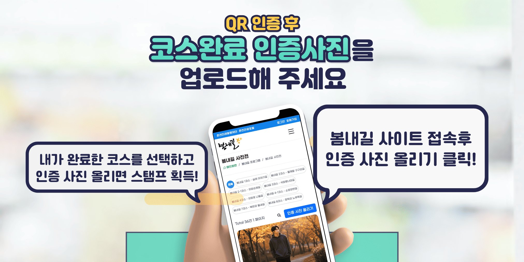 봄내길의 각 코스에 방문하여, 멋진 사진을 찍으세요!