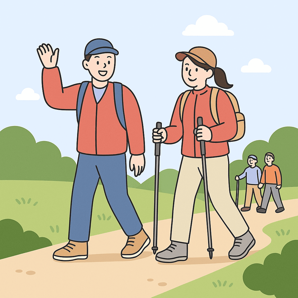 도보여행 시, 만나는 사람들과 밝고 상큼하게 해 봅시다.