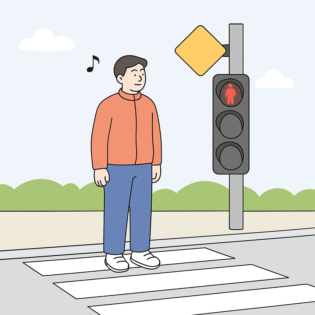 신호등 및 횡단보도에서는 조바심내지 않고 기다리는 여유를...